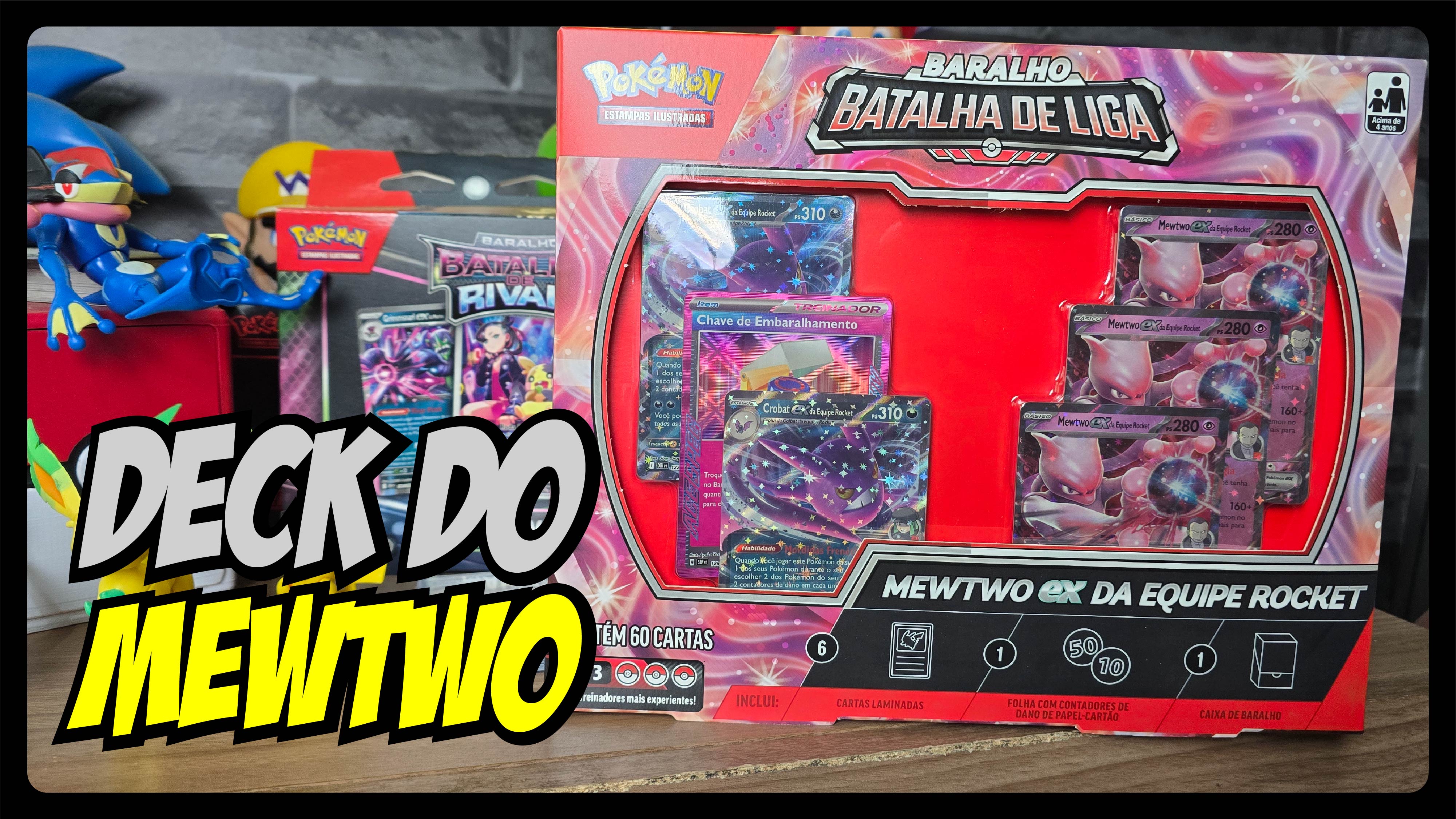 Neste vídeo eu vou te mostrar tudo que vem no novo Baralho BATALHA de LIGA MEWTWO EX da EQUIPE ROCKET e também vou te mostrar como melhorar este baralho para jogar de forma competitiva nas Ligas Pokémon.